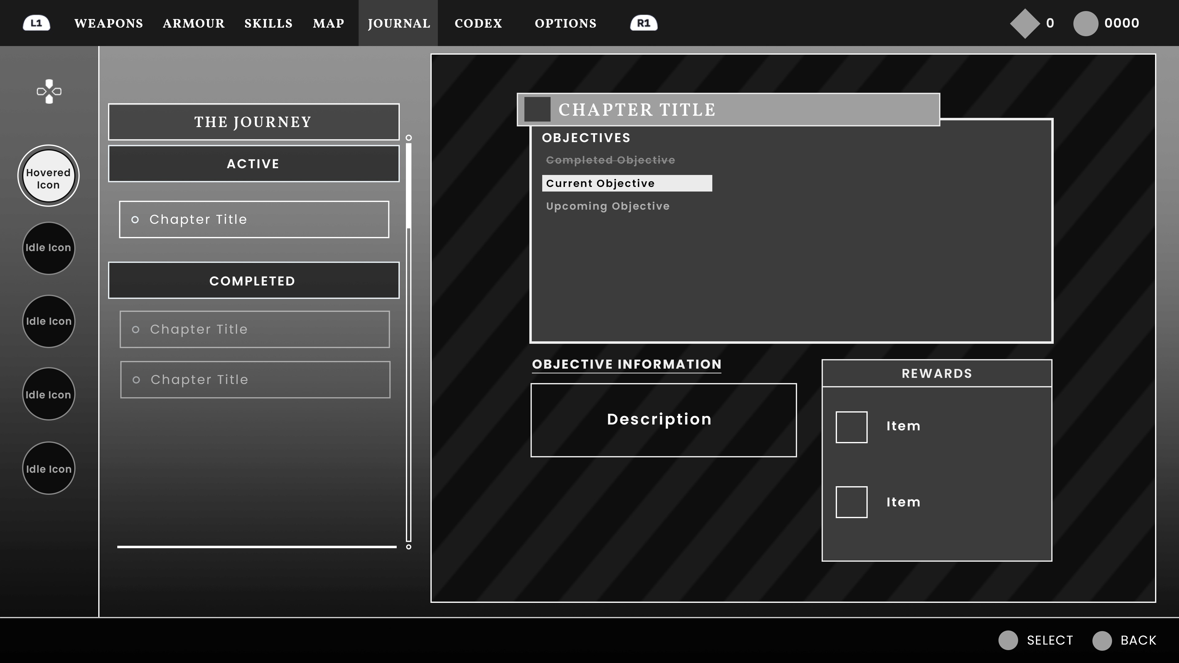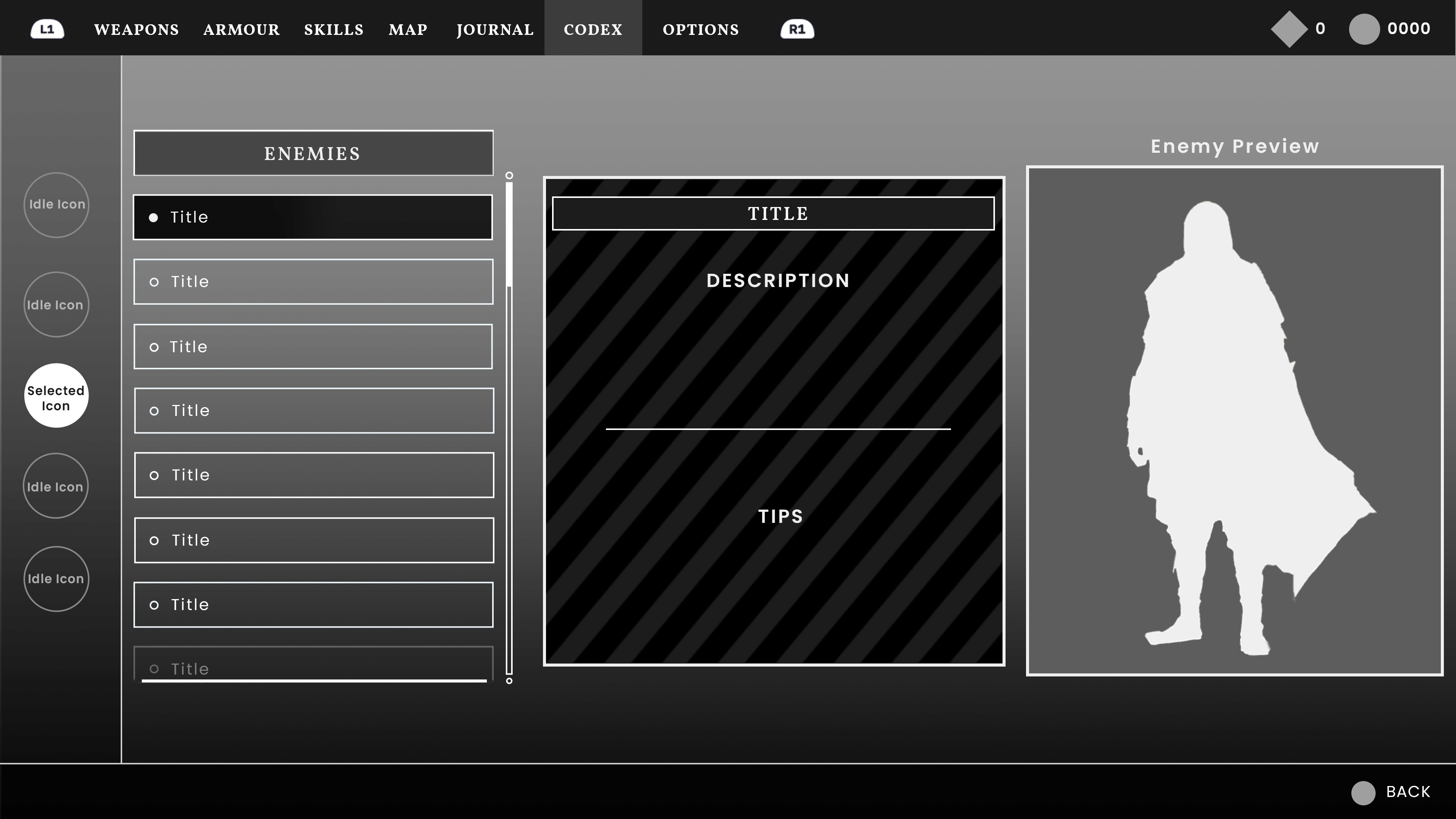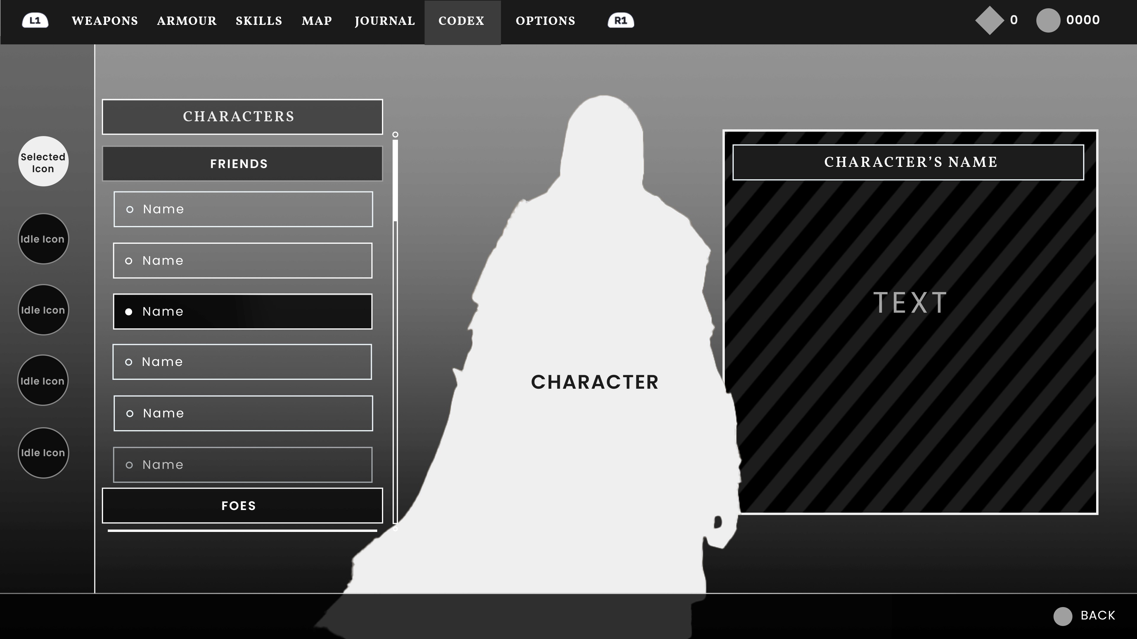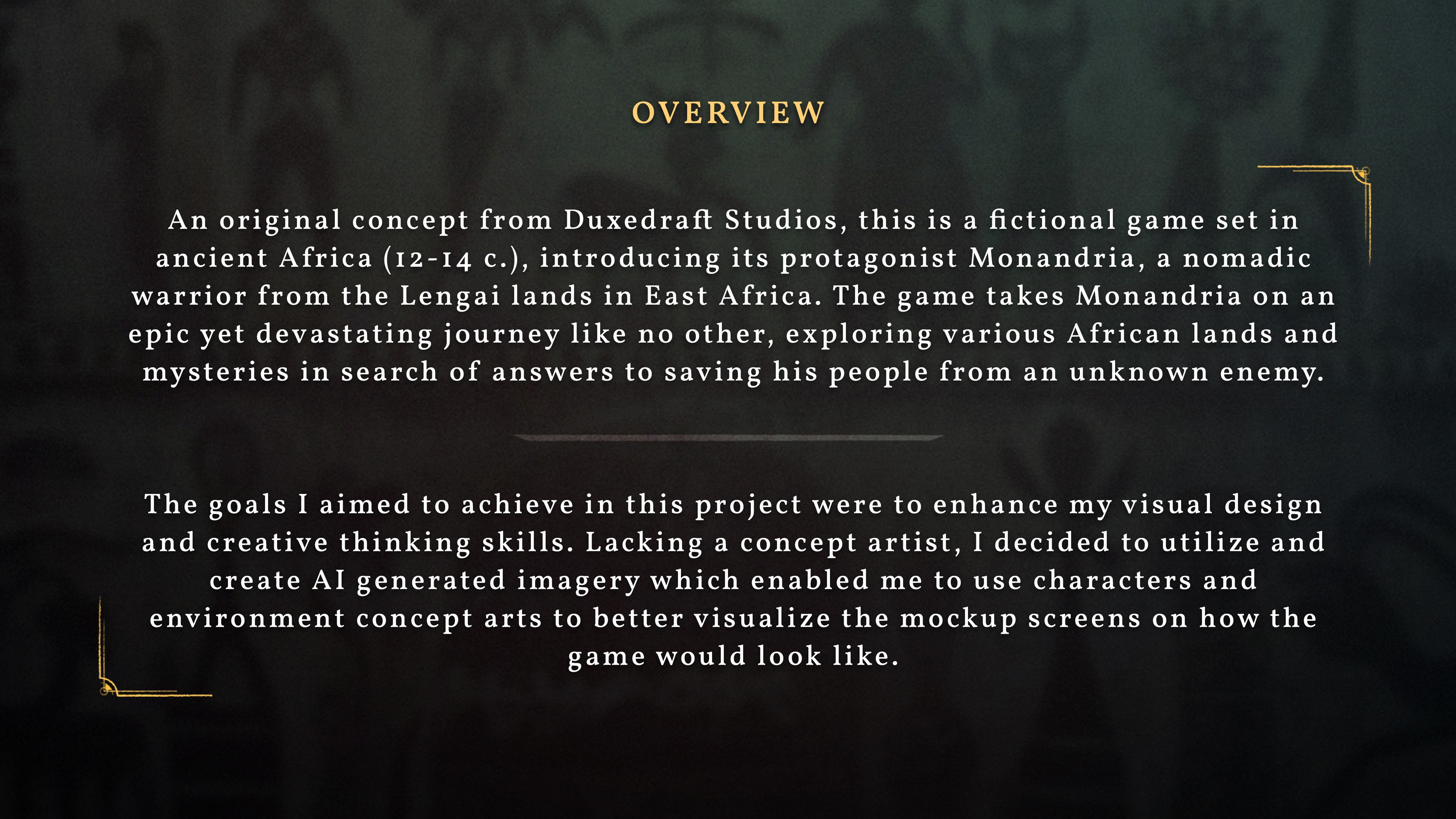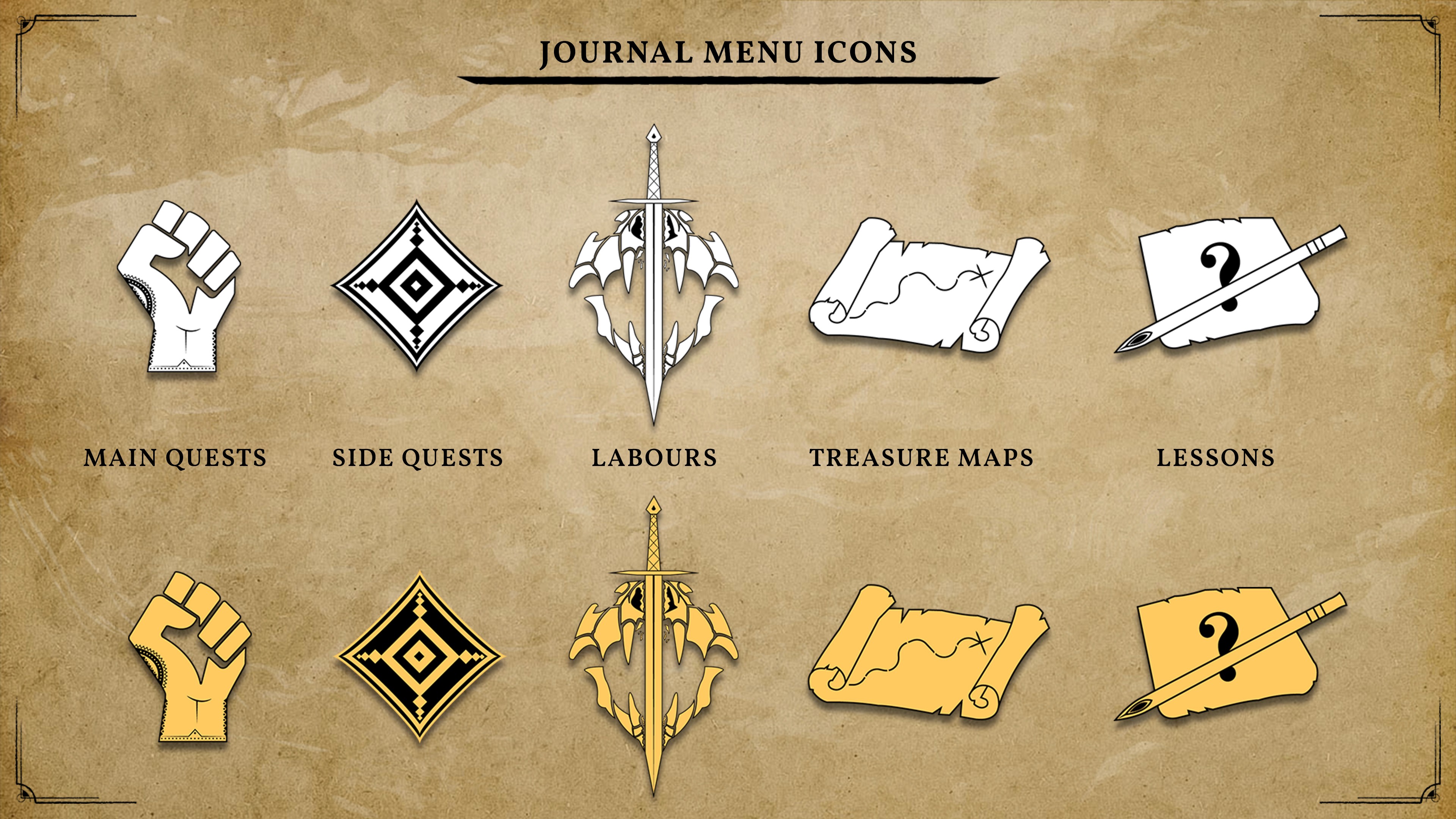 Thus I decided to use charcoal brushes for a number of UI elements such as, buttons, borders, dividers and sliders. For the background, a cave painting scene works well as it helps in keeping the medieval African aesthetic throughout the menus.