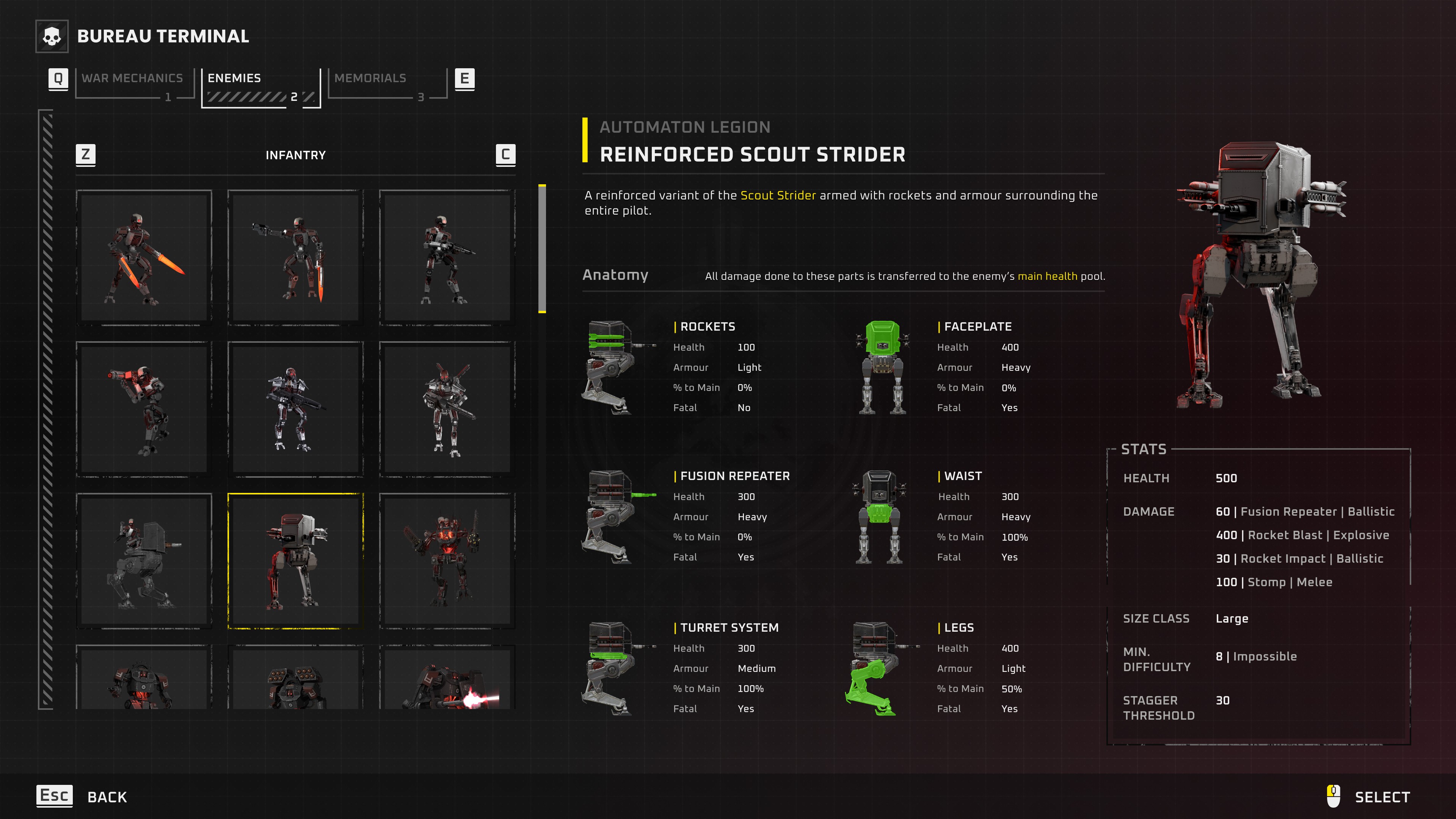 Skill is important but having in-game information like the mockups shown below, would be very beneficial especially to new recruits and even veterans as it would help in boosting loadout variety and how to effectively counter certain enemy types (by learning their weak points) leading to a better overall combat experience for players.